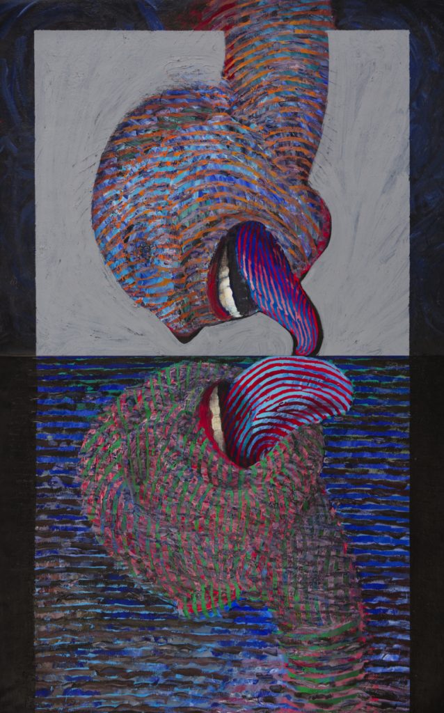 Ik representeer wat er van binnen in de mens aan de hand is. Ik heb nooit een definitief plan. Gedurende het proces ontstaat langzaam het beeld. Ze zeggen dan dat het schilderij zichzelf schildert.”