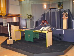 Geplaatst op 12 november 201918 december 2020 door BARRY_CHRISTIAAN_ADDRIAAN_TEMPELAARSLiturgisch centrum avondmaalstafel; katheder; menora Ontmoetingskerk Bergen op Zoom 2003 ontwerp Auke van der Heide en Jan Wessendorp KONICA MINOLTA DIGITAL CAMERA